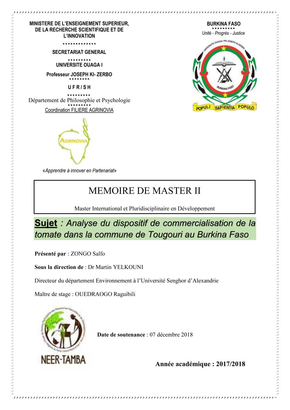 La durée totale de la formation Master II est de 9 mois (Octobre-Juillet). Les premières 3 mois (d’Octobre à Décembre) sont consacrés à la formation intensive en classe (Université Joseph Ki Zerbo, à Ouagadougou), avec un agenda très précis et serré qui ne souffre d’aucune grève. La présence en classe est obligatoire pour toutes les […]