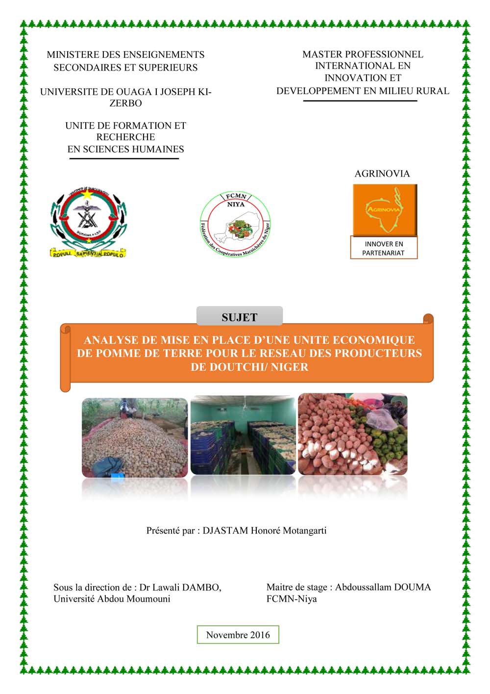 Analyse de mise en place d’une unité economique de pomme de terre pour le réseau des producteurs de Doutchi (Niger)