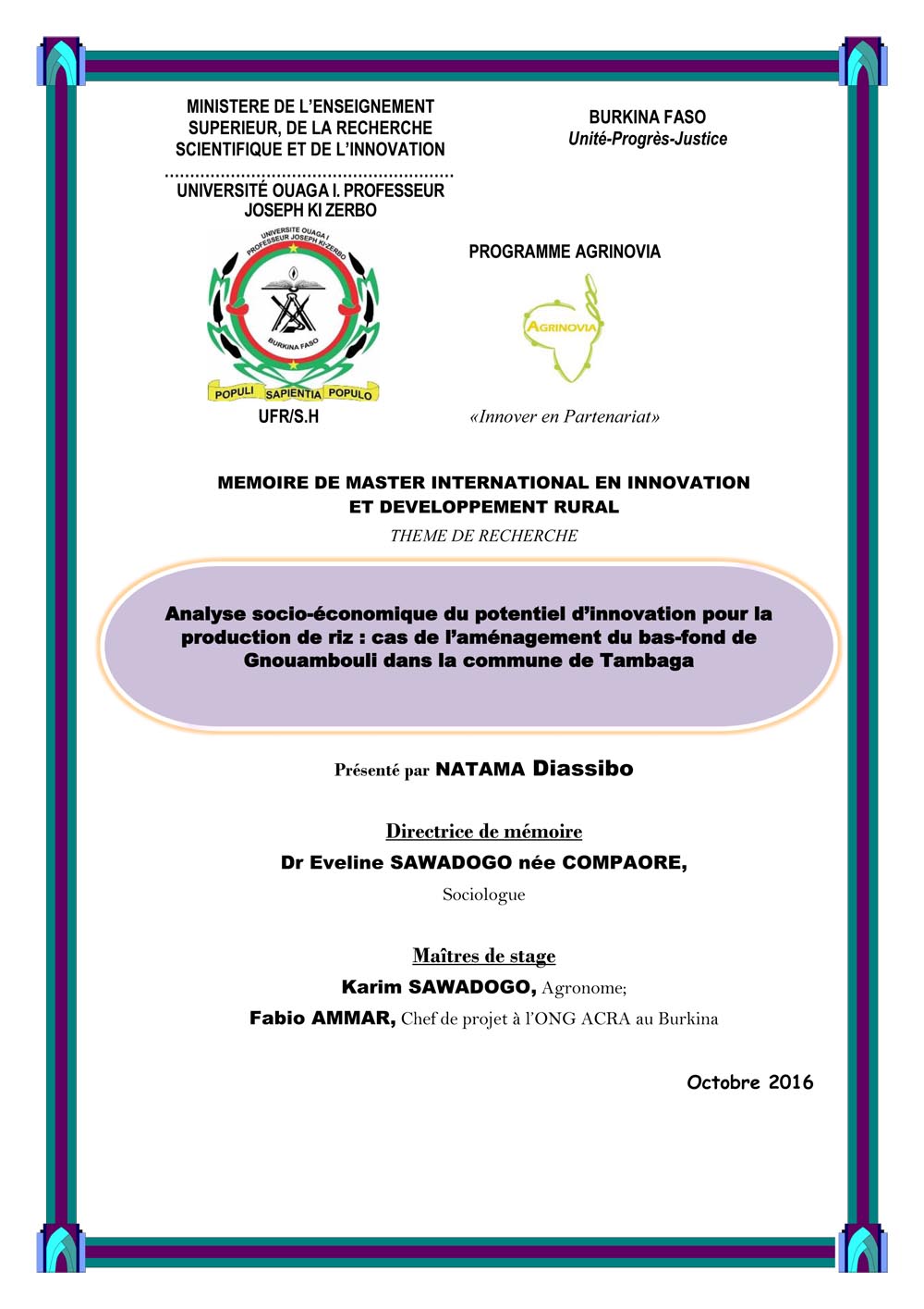 Analyse socio-économique du potentiel d’innovation pour la production de riz : cas de l’aménagement du bas-fond de Gnouambouli dans la commune de Tambaga
