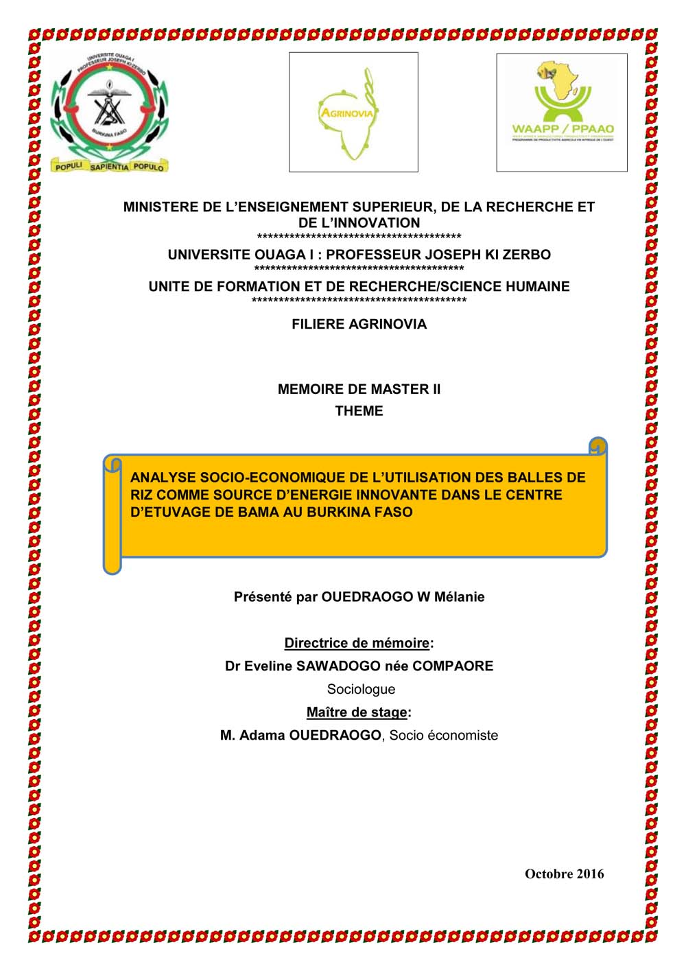 Analyse socio-économique de l’utilisation des balles de riz comme source d’énergie innovante dans le centre d’etuvage de Bama au Burkina Faso