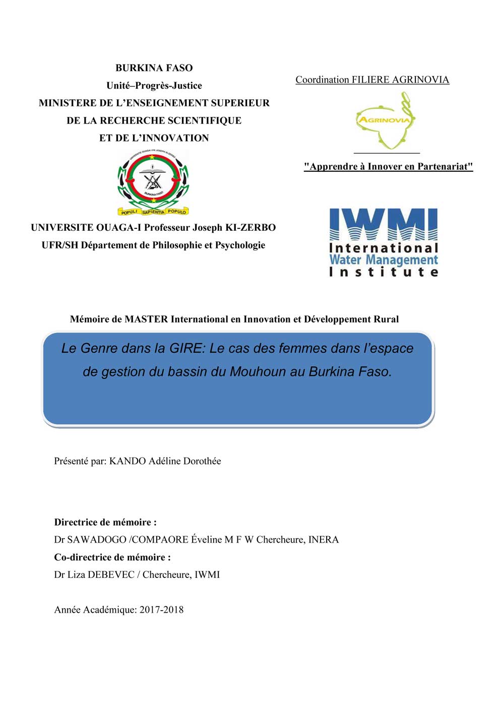 Le Genre dans la GIRE: Le cas des femmes dans l’espace de gestion du bassin du Mouhoun au Burkina Faso.