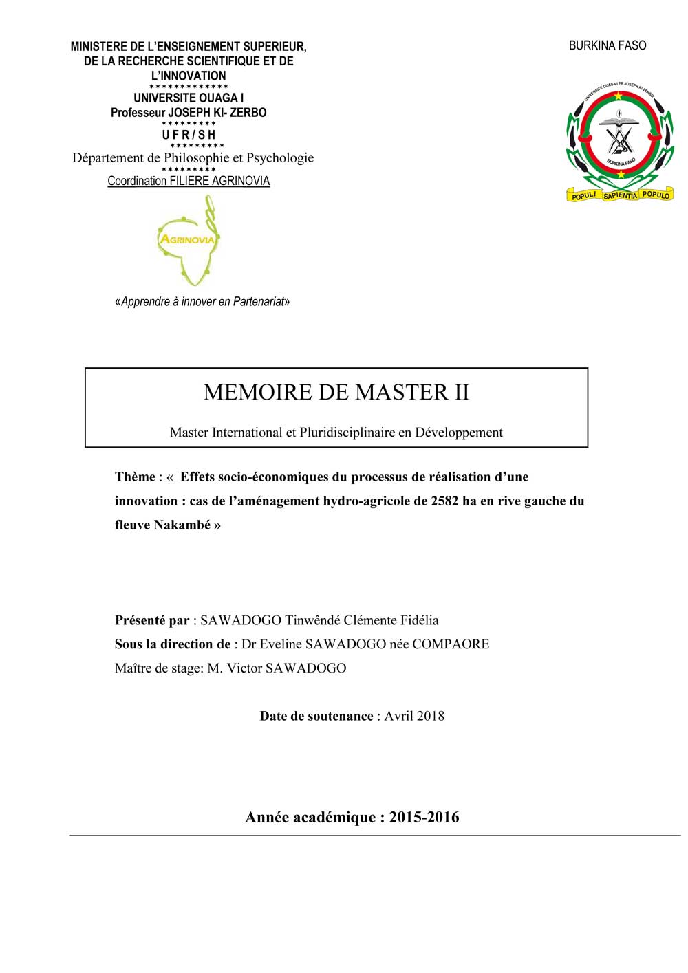 Effets socio-économiques du processus de réalisation d’une innovation: cas de l’aménagement hydro-agricole de 2582 ha en rive gauche du fleuve Nakambé