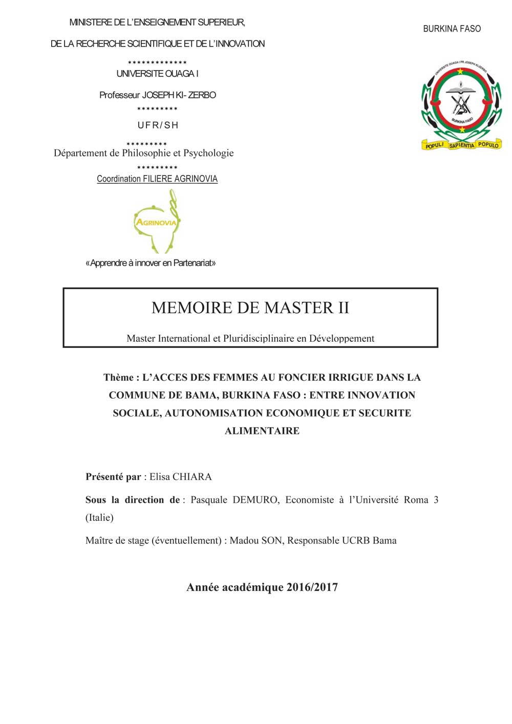 L’acces des femmes au foncier irrigue dans la commune de Bama, Burkina Faso: entre innovation sociale, auotnomisation économique et sécurité alimentaire